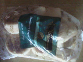 I was not about to run out and buy a loaf to take this picture, but did think of swinging by the grocery store to take a pictures of their selection but then I would have HAD to buy one - because I was THERE so I didn't do that. Instead I pulled out some San Francisco Sourdough English Muffins - Mini's that were sent to us as a Christmas gift. I've been eating the other varieties first - saving my favorite for last!