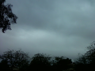 We had a great view of the north eastern valley and could see the storms move in from the south and just sweep across the valley like somebody had drawn a line across the sky - one in pale blue/grey and one in dark stormy grey. The last couple of days have been overcast with the threat of rain looming. Although, I'm not sure how much a 'threat' it is when you live in the desert and winter doesn't mean snow it means green grass, fat saguaros, and bushes blooming all over the place --- in other words "Spring" in other parts of the world!