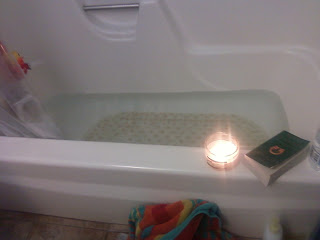 Because of this I decided to take a picture of something that is along the lines of "Spa Day", a nice long soak with water, candles, a book, and a tub full of hot water. The results usually leaving me feeling relaxed and feeling "pretty."